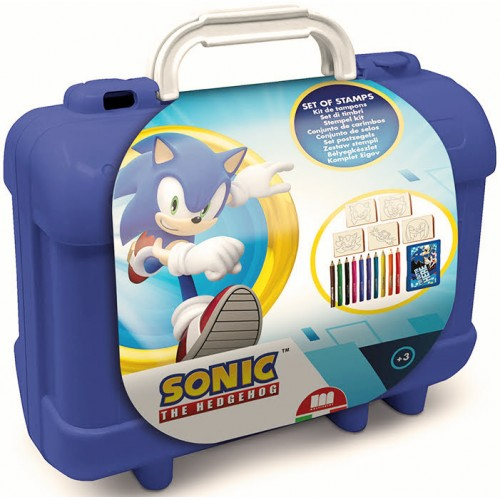 CONTINUT - 5 STAMPILE REALIZATE DIN LEMN  NETRATAT SI CAUCIUC NATURAL, NON TOXICE ( 4.5X4.5X1.8 CM ), 1 TUSIERA ( 8.5X5.7X1.3 CM ) CU TUS ALBASTRU PE BAZA DE GLICERINA,LAVABIL, 10 CREIOANE COLORATE, 1 CAIET PENTRU DESEN, 2 SET-URI STIKER, 1 VALIZA CU MANER ( 23X20X11 CM)