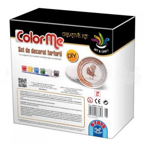 SET DE FARFURII DE PICTAT. JOCUL  INCLUDE SETUL DE CULORI  PENTRU COLORAT PORTELANUL, INSTRUCTIUNI SI INFORMATII DESPRE MODELE TRADITIONALE FOLOSITE PENTRU INFRUMUSETAREA DIVERSELOR OBIECTE DIN LUT,PORTELAN,ETC...DIMENSIUNE CUTIE: 22X22X9 CM