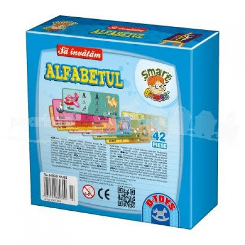 Joc Montessori Să învățăm alfabetul este un set educativ interactiv creat pentru copiii de 5+ ani, care îi ajută să se familiarizeze cu literele alfabetului într-un mod jucăuș și intuitiv. Jocul include 42 de piese din carton, grupate în seturi de câte 3, fiecare reprezentând două litere și un exemplu de obiect sau imagine al cărei nume începe cu litera respectivă.