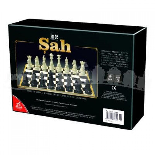 JOCUL DE SAH VA FI INTOTDEAUA UNUL DINTRE CELE MAI SOLICITANTE JOCURI PENTRU CREIERUL UMAN. IMBUNATATESTE CONCENTRAREA, ATENTIA SI PERSPICACITATEA, DAR IL SI DEDERMINA PE JUCATOR SA ANTICIPEZE MISCARILE ADVERSARULUI - Jocul de sah este nobil si dezvolta gandirea si logica. Acum se poate gasi si la D-toys, in varianta unor piese de calitate superioara. Numar participanti: 2 jucatori. Varsta recomandata: 14-99 ani. Materiale: plastic, carton. Continut: 32 piese de sah, 1 tabla de sah. (piese de sah cu dimensiuni oficiale pentru concurs). Dimensiune cutie-ambalaj: 36.5x24x6.5 cm