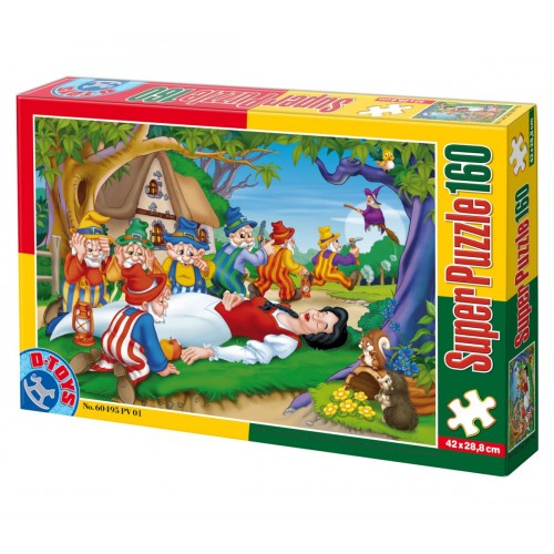 PUZZLE 160 PIESE - ALBA CA ZAPADA SI CEI SAPTE PITICI.DIMENSIUNE PUZZLE:42X28.8 CM.DIMENSIUNE CUTIE:34.5X22.5X5 CM