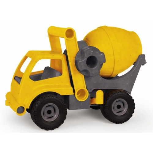 MATERIAL ECOLOGIC OBTINUT DIN RECICLARE SI AMESTEC DE LEMN, FABRICAT IN EU. DIMENSIUNI CUTIE - AMBALAJ: 28X19X13 SE POATE FOLOSI ATAT IN INTERIOR CAT SI IN EXTERIOR. BETONIERA SE ROTESTE,  RECIPIENTUL DE BASCULARE DISPUNE DE UN OPRITOR, IAR CABINA SE DESCHIDE. VARSTA RECOMANDATA +3 ANI